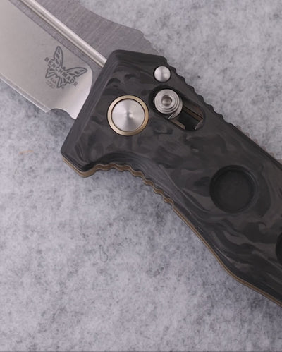 Toughness doesn’t take a day off. The 273-03 Mini Adamas®️ cleans up nicely with marbled carbon fibre handle scales and bright accents, bringing refined style to this utilitarian pocket tank. Featuring an ultra-tough CPM-Magnacut️ blade—this time with a satin finish—and nodding to its predecessors with FDE hardware, this classy weekday workhorse is ready for the weekend.